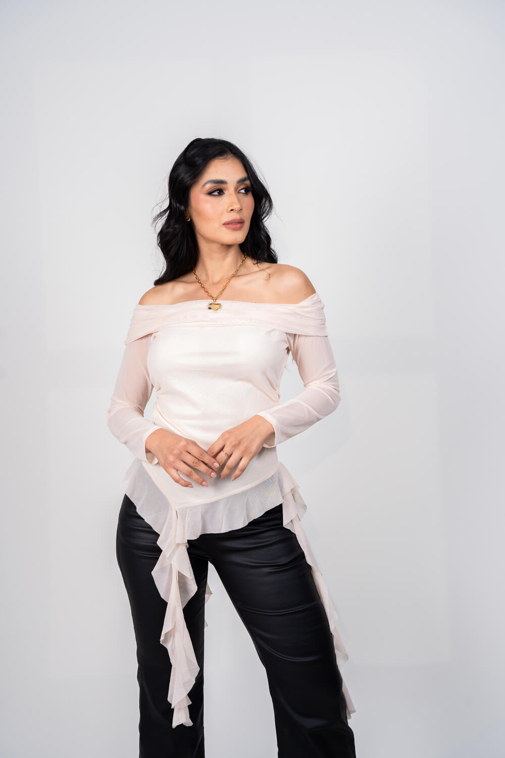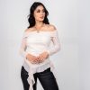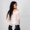 Blusa cuello bandeja con boleros y mangas en malla