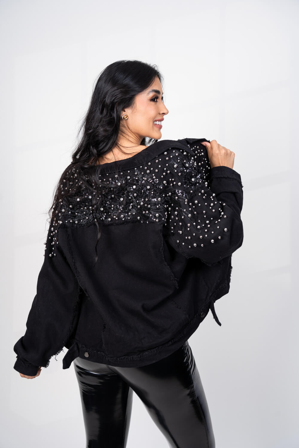 Chaqueta de jean oversized con brillos