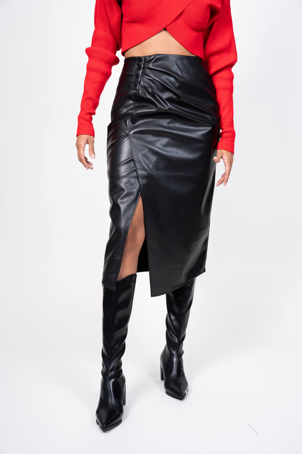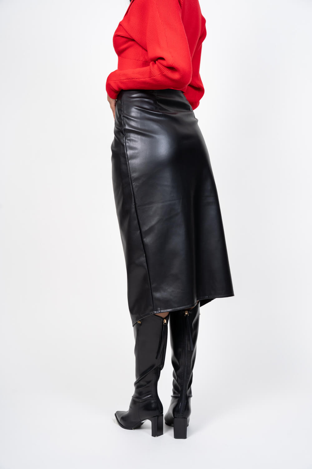 Falda larga con abertura, en cuerina